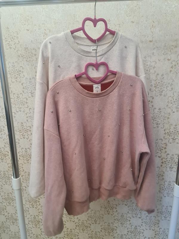 Свитшоты с камнями. Камни пришиты, очень тёплые на флисе, удобные и мягкие. Классные цвета, на рукавах и снизу свитшота рибана. фреза в отличном состоянии без деффектов на кремовом есть два оттеночных пятнышка, но из за принта меланж не видно Отдаю комплектом оба 😊🙏