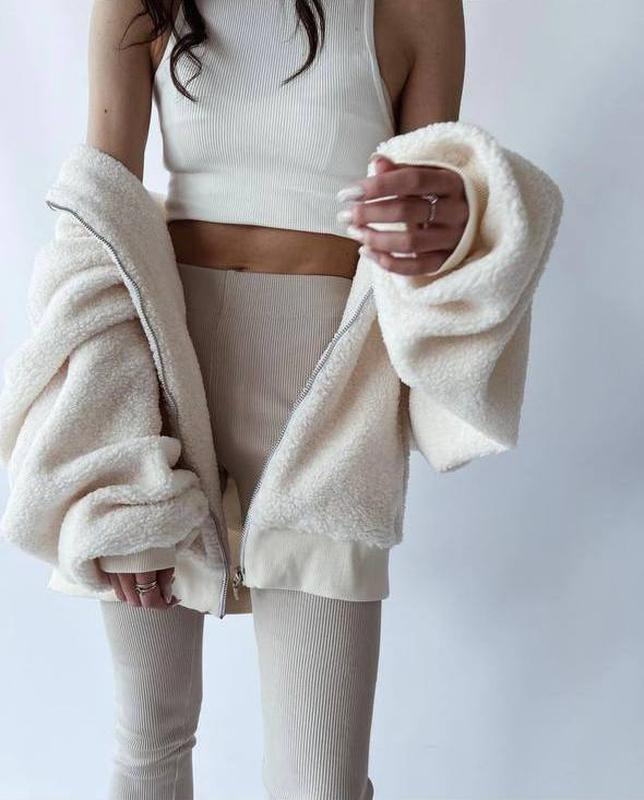 Бомбер Модель 979 Розмір OVER Тканина Хутро барашек На підкладці синтепон , манжет резинка Колір молоко
