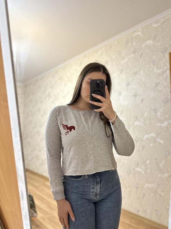 Кофтинка Colin’s Сірого кольору, з двониткт з плюшевою нашивкою Розмір М, підійде краще на S в буде вільно сидіти Кофта вкорочена, розширюється донизу Стан як нової