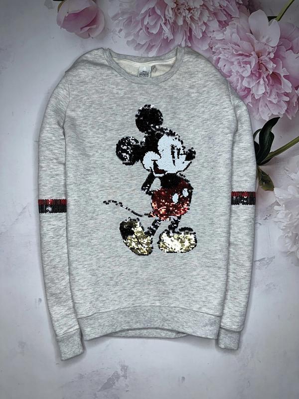 Свитшот с Микки маус Внутри на баечке Пайетки интерактивные Состояние отличное 🏷️Disney ✨️158-164 р Длина 58/61. ПОГ 46. Рукав 60