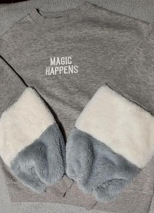 Теплый свитшот с рукавами из искусственного меха. Без дефектов и нюансов. Замеры есть в объявлении