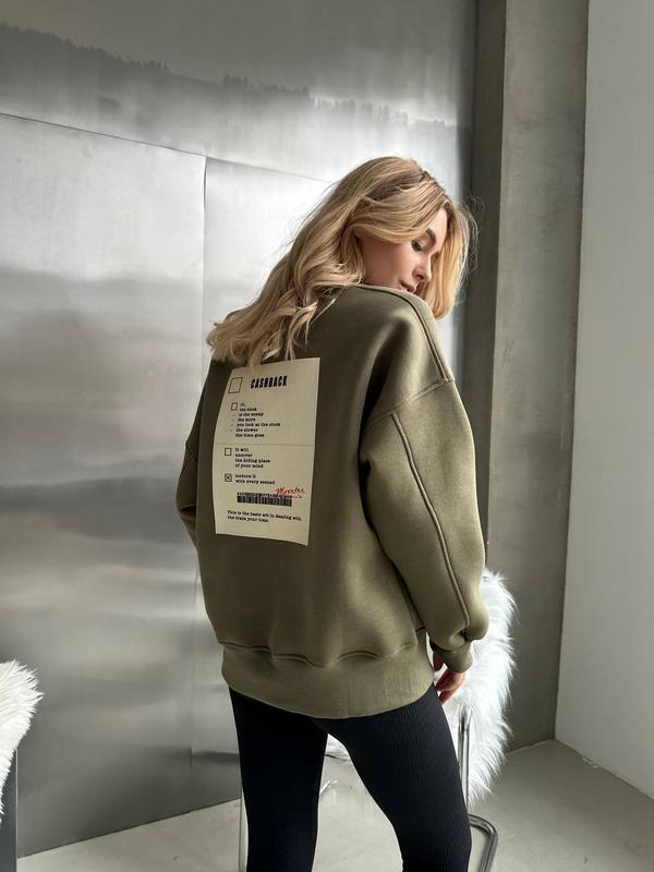 #Свитшот Артикул: 932-840 Цвет: беж, хаки Размер: 42-46 Материал: турецкая трехнить на флисе ПЕНЬЕ Мягкая, не кашлатится, не теряет цвет, манжеты из рибаны Кашкорсе и качественный накат