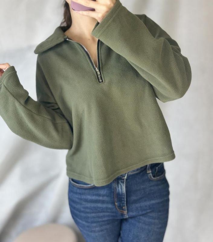 флісова кофта хаккі з зіпкою і комірцем