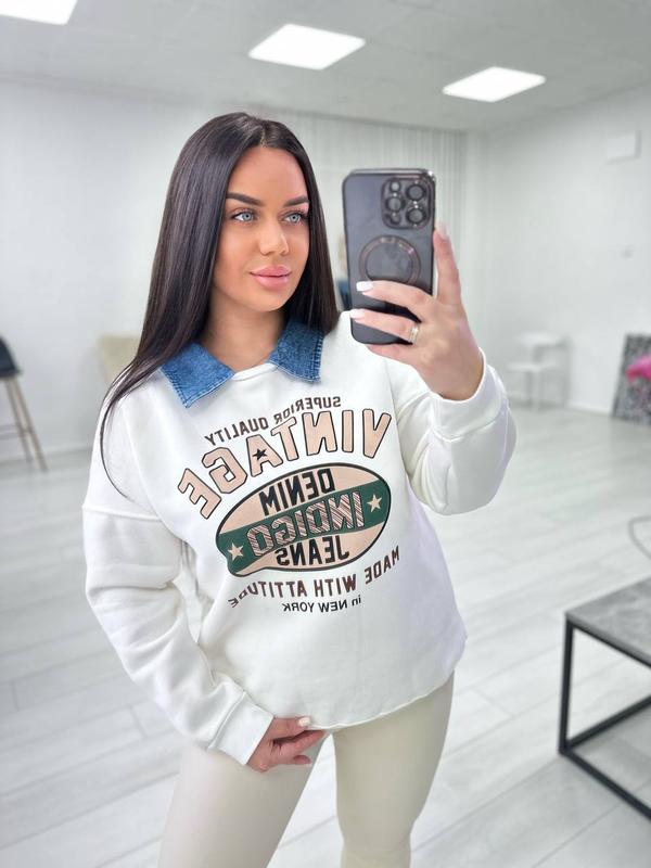 🔝Трендова новинка 🔝 Ексклюзивні світшоти з джинсовим комірцем та надписами💘 Висока фабрична якість, Туреччина 🇹🇷💯 Розміри S/M, L/XL ▫️S/M-ширина 60 см ▫️L/Xl- ширина 63 см Довжина 66 см Рукав від горловини 70 см ✨1210 грн ej