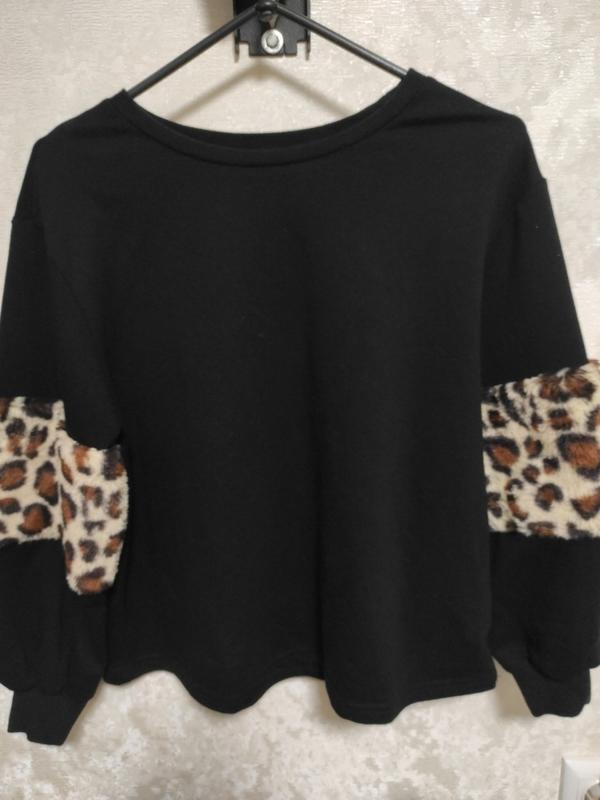 размер хс, подзодит также на с и м, рукава объемные с вставками из искусственного меха леопардовый принт, модель свободного кроя. Длина 58 см Полуобхват грудей 54 см Плечи 44 см Рукав от плеча 51 см Рукавчики широкі. полуобхват, де хутрова вставка - 20 см