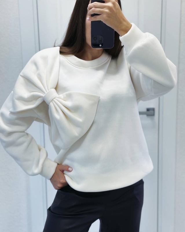 Світшот Модель 893 /1893 Розмір 42/46 та 48/52 Тканина трикотаж теплий трьохнить Кольори: молоко, беж, чорний ,червоний , блакитна Стильний трендовий светр з декоративним бантом спереду Крій оверсайз Низ та рукава на манжет 😍Заміри: ПОГ 58см /62см, довжина 68см/70см _______________ •~•~•~•~•~•~•~•~•~•~•~•~•~