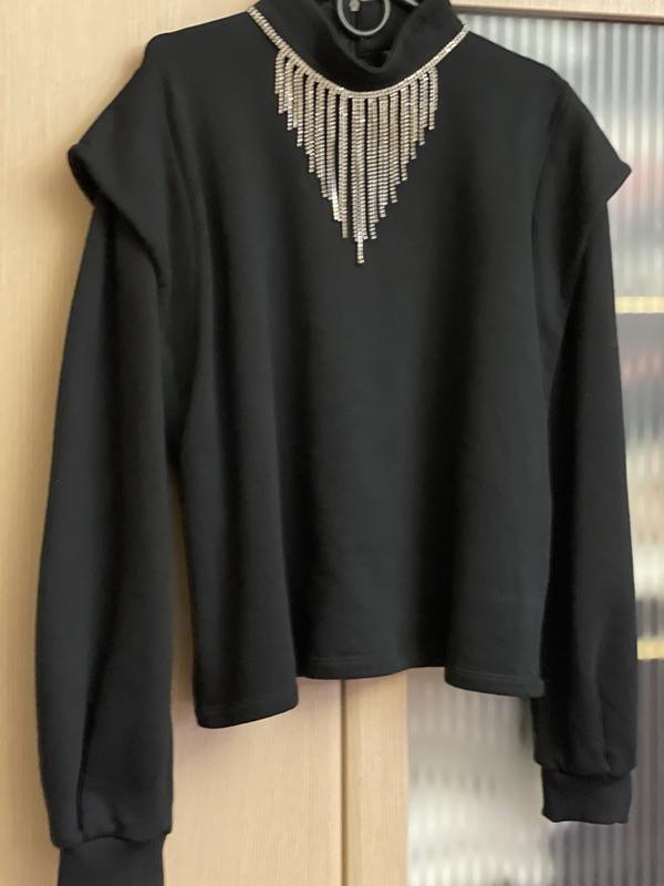 Свитшот утепленный. ПОГ 64, ПОТ 63, ПО низу 63, длина 60, рукав 73, плечи 43, сзади есть молния у горловины. Украшение можно снимать.