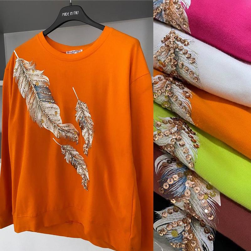 Світшот❤️ Виробник Туреччина, Якісні, не кошлатяться. Тканина двохнитка котон У розмірах S-L Є у кольорах: оранжевий, білий, чорний, салатовий, коричневий, малиновий🧡🤍🖤💚🤎🩷 S: пог 52, довжина рукава 56, 61см М: пог 53, довжина рукава 57, довжина 61 L: пог 57, довжина рукава 58, довжина 62см Ціна зі знижкою 450грн🔥🔥🔥