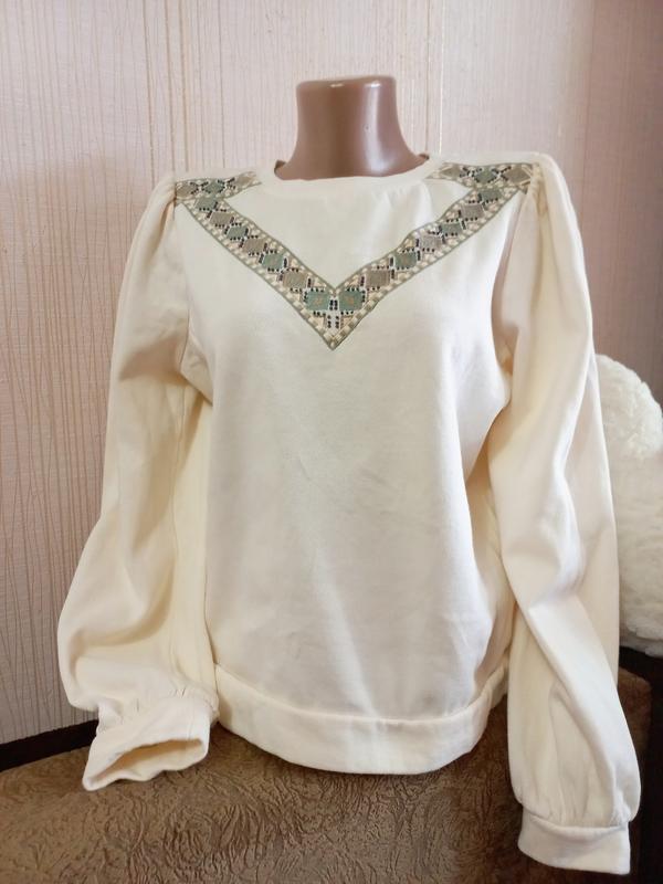 Раз . s интерестный свитшот кофта толстовка с обьемными рукавами с декором