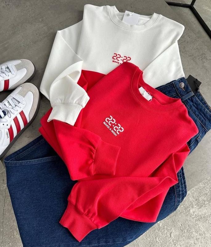 Модель 0136 jas Свитшот женский Тканина : двух нитка Цвет белый, красный Размер 42-46 ОТПРАВКА в течение 2-4 дней!️ ❌БЕЗОПАСНОСТЬЮ ОПЛАТОЮ не отправляем