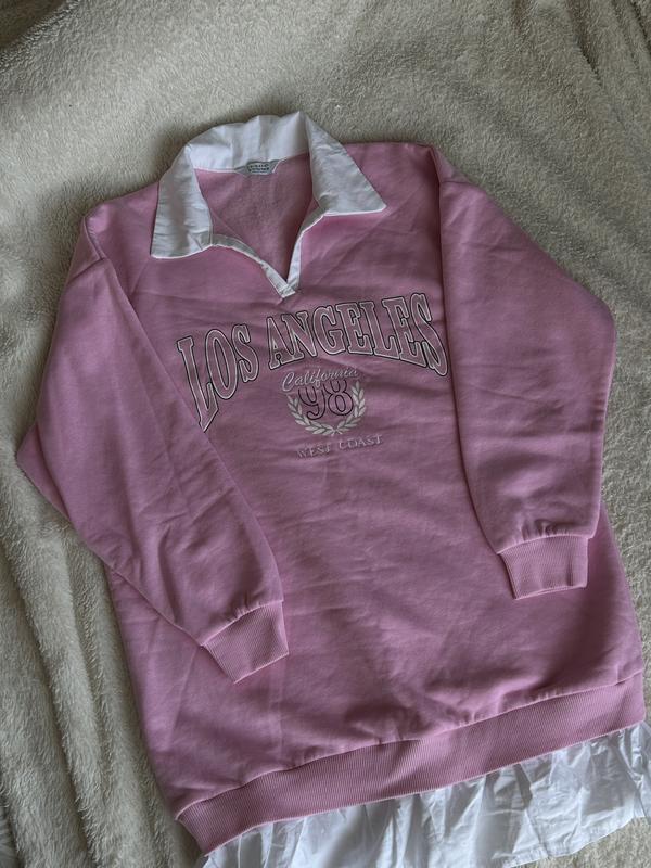 Світшот у рожевому кольорі, має імітацію сорочки,утеплена в середині.