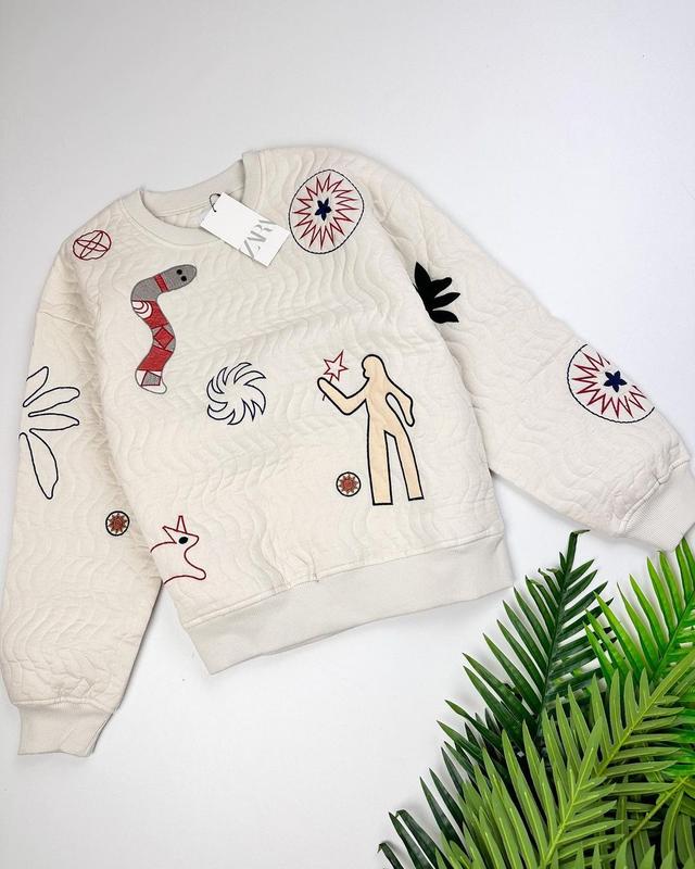 Бежевий фактурний світшот із цікавою вишивкою