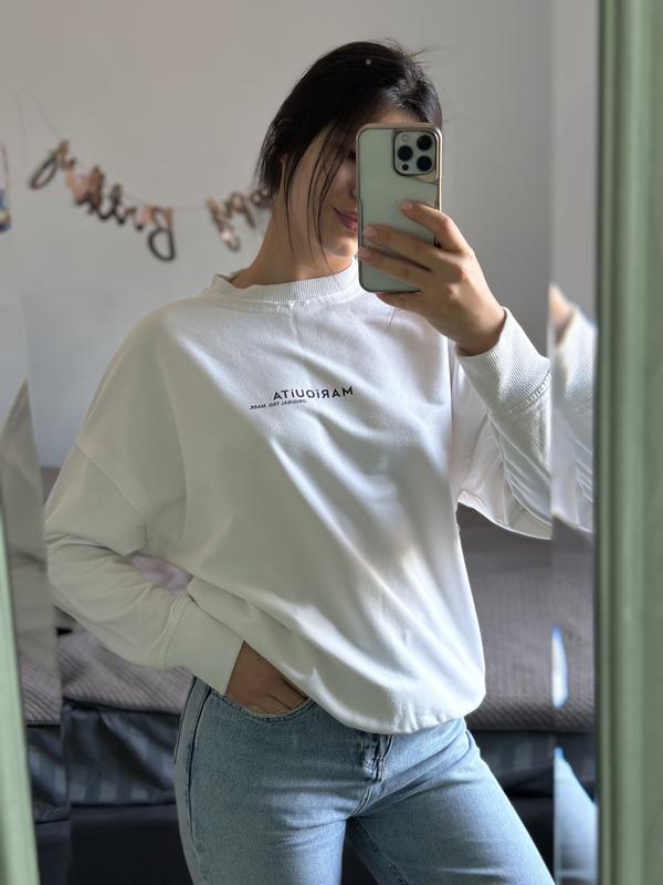 Свитшот без пятен но имеет катушки по всей ткани