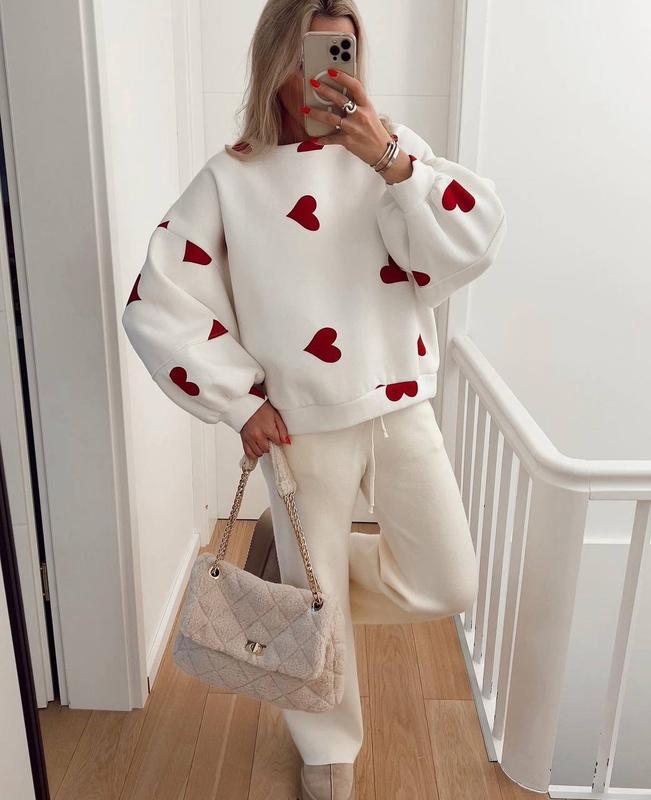 Свитшот сердечки❤️ Код 190 Ткань: трехнит на флисе Цвета: серый меланж, белый Размеры: 42-46 Универсал Объемная теплая кофтина, идеальная по сезону. Качественная накатка. Приятная мягкая к телу ткань.