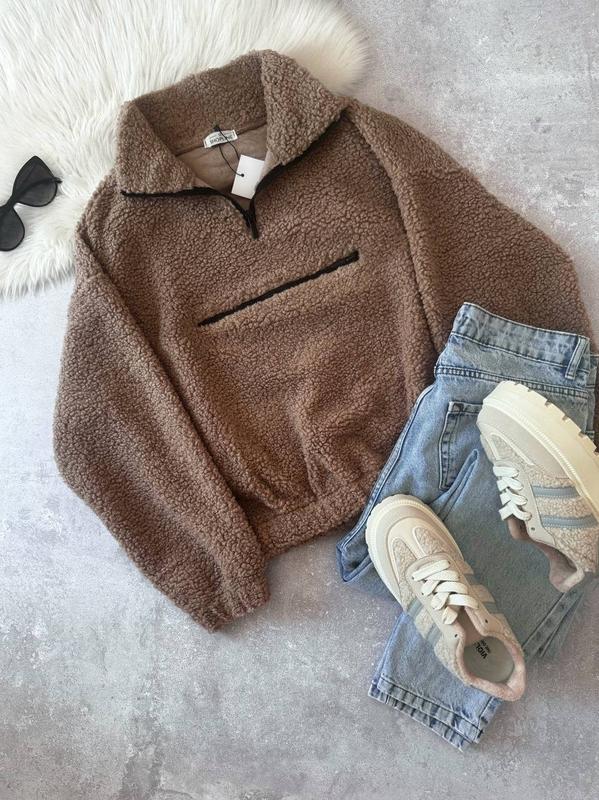Світшот “TEDDY CASUAL”🔺 Мод.350 Розмір:42-46 Колір:какао,світлий беж Тканина:щільне букле тедді По грудям 120 см Загальна довжина по спинці 60 см Довжина рукава від горловини 73 см Світшот із блискавкою та зручною кишенею на грудях. Низ рукавів та виробу на еластичній резинці. Це саме та річ, яка зробить твій образ актуальним 😻