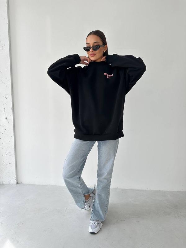 Світшот виготовлений з трьохнитки на флісі, що надає йому тепло та м’якість. Доступний у двох розмірах: 42-46 та 48-52, з обхватом грудей 114 см і 122 см відповідно. Довжина світшота становить 72 см для обох розмірів, а довжина рукава від ворота — 75 см. Колірні варіанти: білий, чорний та барбі, що дозволяє обрати стильний варіант на будь-який смак.
