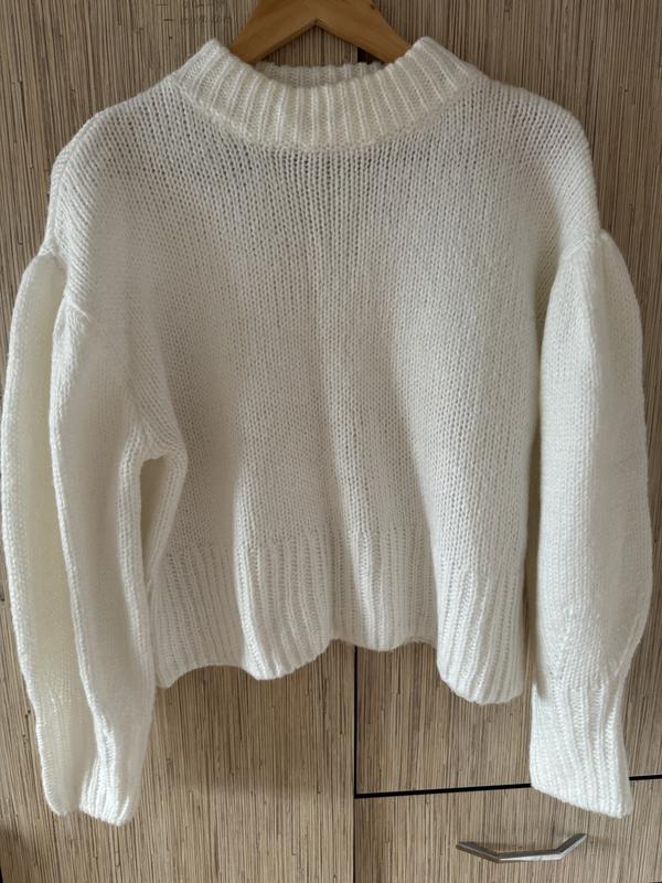 Світшот теплесенький, стильний, бренду H&M, якісна щільна вʼязка, легкий та приємний до тіла, не кусається) молочного кольору, приспущений фасон рукава👌 в саме серденько 💘 купила в Франції, один раз одягнула, як новенький