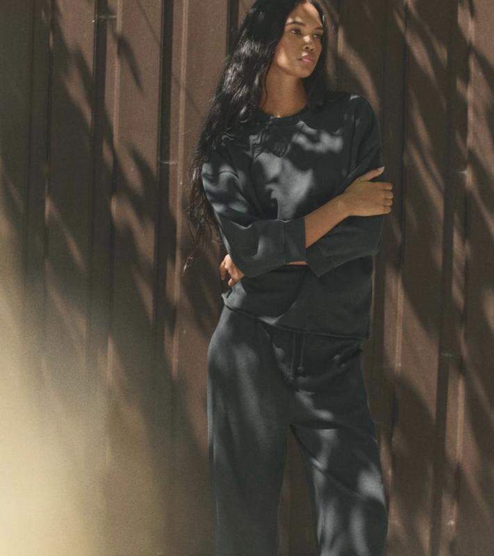 Свитшот оверсайз с круглым воротником и опущенными проймами, опускающимися ниже локтя. Вареный материал. Окантовка в рубчик. Цвет антрацитовый серый