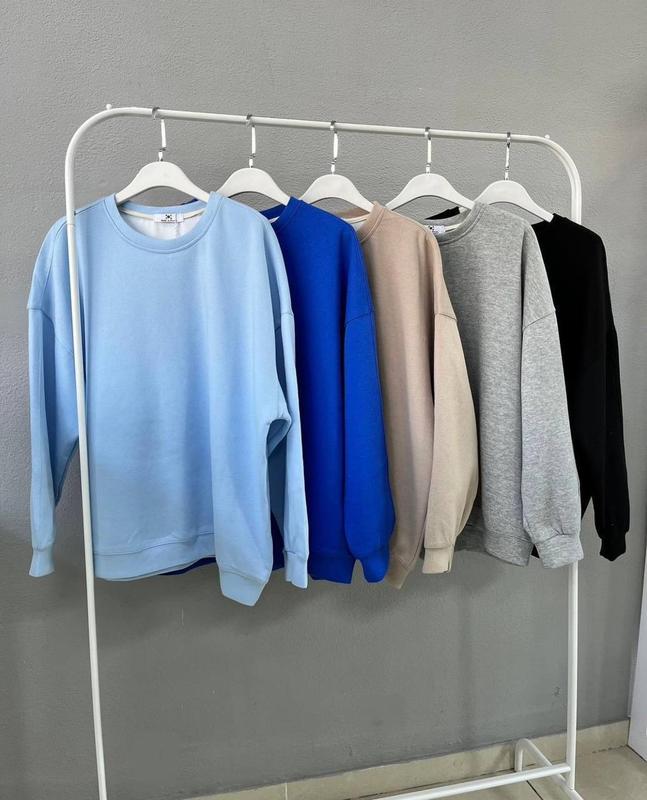 Базові світшоти на кожен день😉 Розмір oversize✌️ - чорний - сірий - блакитний - синій (електрик) - червоний ➡️Мод. pf 4039 ➡️Тканина: Трьохнитка на флісі Розміри: 42-46, 48-52 Код13 Перший розмір ОГ до 99см Другий розмір ОГ до 113см