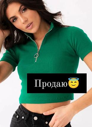 Ваш новый стильный выбор! 💚 Укороченная облегающая фигуру футболка с оригинальной металлической молнией и воротником-стойкой. Натуральный хлопковый трикотаж в рубчик - комфорт и стиль в одном. 📏 Размер: М 💰 Цена: 650 грн. Добавьте трендовый акцент в свой гардероб уже сегодня!