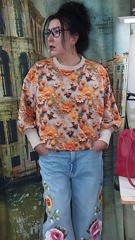 Добавте яскравих барв у життя, жіночий світшот виконаний з двонитки якості пеньє- Нідерланди. довжина виробу 76 см, ширина навпіл 65 см, довжина рукава від горловини до кінця манжету 70 см, манжет можна підгорнути навпіл- буде рука в 3/4