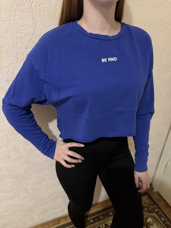 Кофта в синьому кольорі Не довга Широка, типу оверсайз Чудово підійде як для Лосин, так і для джинсів