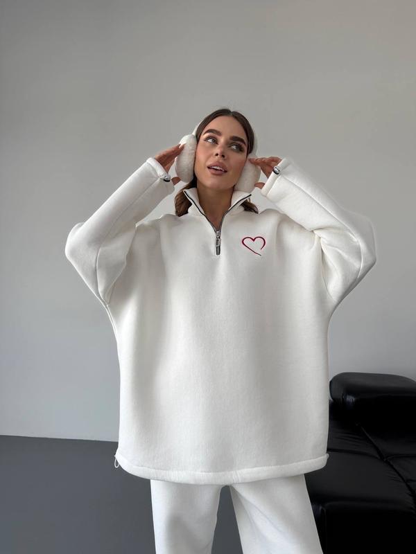 Модель : 099 Світшот з вишивкою з теплої трьохники Теплих речей багато не буває 🤭 Штани також можна придбати окремо Тканина : турецька трьохнитка Піньє Колір : чорний , графіт , молоко Розмір : S - L 🏷️ Ціна штанів : 999 грн