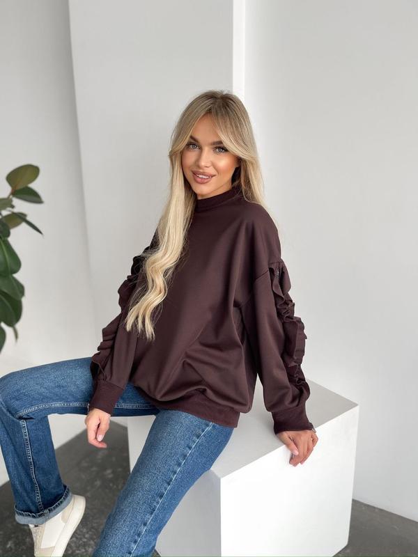 Світшот оверсайз 🔠🔠🔠❗️ ХІТ ПРОДАЖІВ 🛍 ❤️ Фото і відео чекаємо❤️ ✔️СВІТШОТ ОВЕРСАЙЗ 🟢Мод 814 🟢Тканина - дайвінг на флісі ( щільний) 🟢Розміри - SМ (42-46) one size 🟢Колір - шоколад 💎 Світшот можна вдягнути с джинсами, брюками, спідницею, лосінами - він універсальний. Блискавкі розстібаються. Шоколад - це самий трендовий колір цієї осені. Будь у тренді ❤️⭐️ Супер якість🏹 Супер пошиття ⚡️ 💰 ЦІНА 850грн