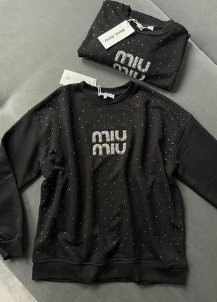 Стильный свитшот в стиле Миу Производитель Турция. Тканина :двонитка петля Свитшот декорирован камешками, которые надежно приклеены и не отпадают. Размер СМЛ Стирка на деликатном режиме. Замеры: С размер Длина 62 см Ширина полу охват 58 Рукав от горловины 70 М размер Длина 63 см Ширина под мышками полуобхват 58 Рукав от горловины 70 см Л размер Длина 64 Ширина полуобхват 60 Рукав от горловины 72 см