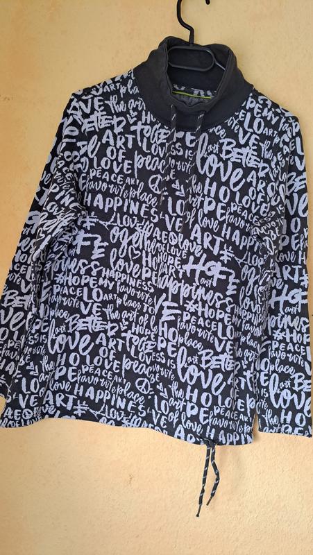 Свитшот темно серого цвета с белыми букваии. Воротник стойка, на шнурочке. Низ тоже подтягивается шнурочком. Слегка воротничек поношеный, но не значительно, просто не темного цвета, но это вообще не заметно особо. Покупала в Германии. НА ВЕСЬ ТОВАР ДОСТУПНЫЕ ЦЕНЫ🌱 Длина 65 см Плечи 40 см Рукав 60 см ПОГ 53 см ПОТ 50,5 см НИЗ 56 см без подтягивания шнурком Смотрите мои другие объявления Отправка Укр или Новой почтой Оплата на карту Приватбанка