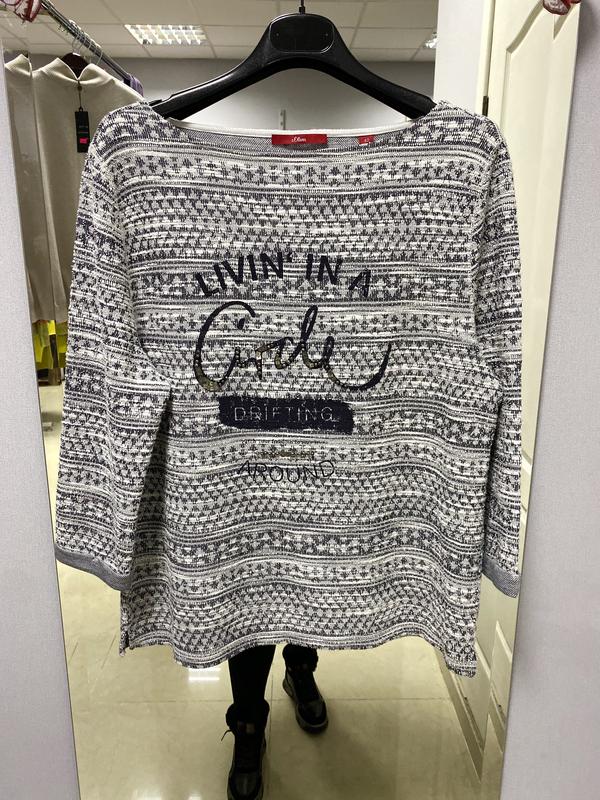 Размер XL Также красиво сядет и на L. Ткань средней плотности, тянется. 35%Бавна,20%Вискоза,45%Полиэстер. Рукав 3/4 По бокам не большие разрезы (4см) Фактические замеры: ПОГ-53,5см ПОТ-51см Длина-63см Рукав-45,5см 🤝 Безпечна оплата 🚚 Доставка Новой Поштой и УкрПоштой 💳 Оплата за реквизитами ФОП 💵 Наложен платеж по подписке 150 грн