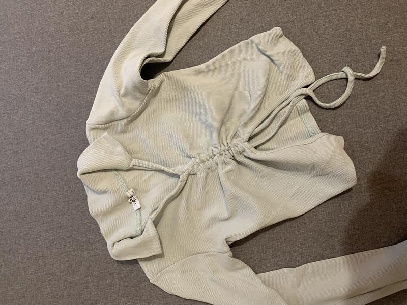 кофта вкорочена мʼятного кольору з переду затягується, можна регулювати розмір від xs до m