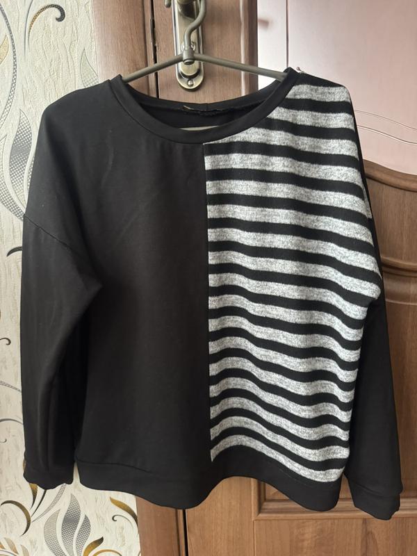 Класний комбінований чорний з смужкою світшот Розмір 48