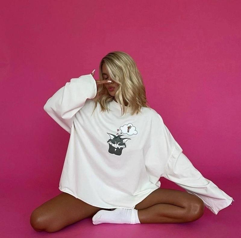 Світшот №727 розмір 42-46,48-52,54-58 тканина двунитка пеньє+ ребана коляри білий,чорний Світшот вільного крою. Дуже добра якість пошиття і тканини **********-52 124,54-58 132 Дов по центру спинки 42-46 67,48-52 68,54-58 69 **********-52 116,54-58 124 Довж рукава від горловини 42-46 70,48-52 71,54-58-72