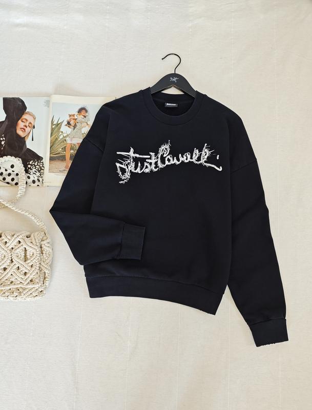 🌿чорний світшот Cavalli з фірмовими потертостями, вільного крою з манжетами, тканина 80% котон, 20% поліестр Розмір:44 Заміри:ПОГ 55 см, довжина 60 см, рукав від горловини 75 см