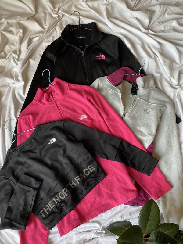 Крутая кофточка от The North Face логотип впереди сбоку, на с пинке больная надпись, размер с (пог45/ длина 41/ рукав 49/ плечи 40) Черная М Розовая Л Серая с фиолетовым с/м