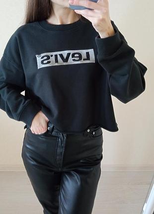 Крутой укороченный свитшот от Levis. Состояние отлично. Цвет чисто черный, не выстиран. Крой широкий,свободный. Размер 38-40. 100%котон Длина 44см Рукав от горловины 72см Пог 59см Оплата на карту!!