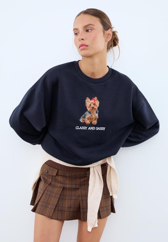 Світшот із круглим коміром і довгими рукавами з еластичними манжетами. Вишивка спереду. Оздоблення в рубчик. Доступний у різних кольорах. ТЕМНО-СИНІЙ | REF. 6672/970/011