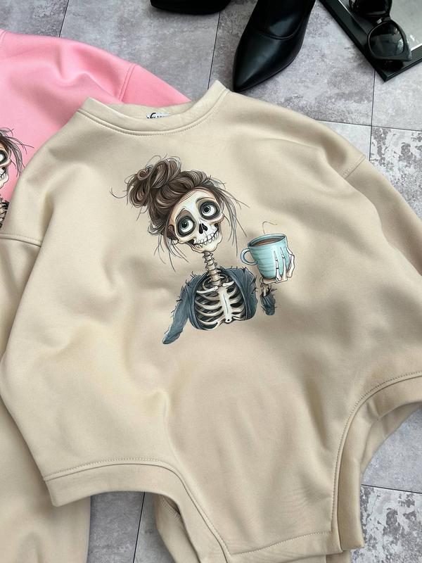 🩸🩸🩸🩸🩸🩸🩸 Свитшот (Фото и видео приведения ) Когда кофе - единственное, что держит тебя при жизни ☕👻 🎃Мод: 7803/1 🩸Ткань: трехнитка на флисе 🎃Цвет: бежевый и розовый 🩸Размеры: 42-46 🎃Цена: 629 грн. Суперкрут худи с ярким принтом, который точно не останется без внимания.👻 Мягкая ткань, удобная посадка и вайб: «я зомби, но модная».🫰 Готовься к Гелловину стильно❗️