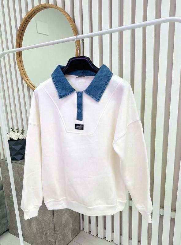 Ексклюзивні світшоти з джинсовим комірцем 💘 7993 👙 Висока фабрична якість, Туреччина 🇹🇷💯 Розміри S/M, L/XL ▫️S/M-ширина 55-57 см ▫️L/Xl- ширина 58-60 см Довжина 62 см Рукав від горловини 70 см 🏷️ 1890 грн