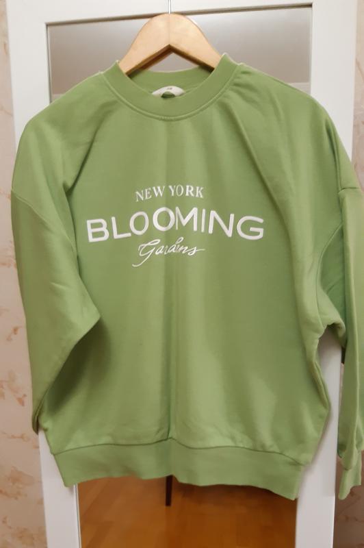 Свитшот зеленый с надписью new york blooming gardens.h&m