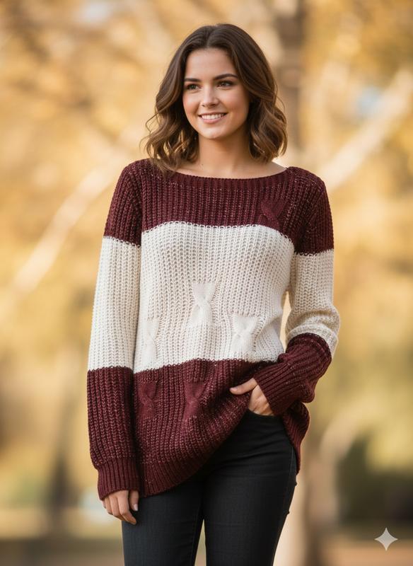 Світер жіночий, білий з бордовим на другому люрекс Гарно виглядає, новий, одягли один раз Дуже м'який та приємний на дотик Розмір S