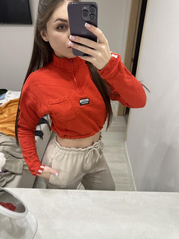 Короткий светр від adidas червоного кольору. Зручний та стильний вибір для спортивних заходів або повсякденного носіння. Гарно сяде на дівчинку хс-с