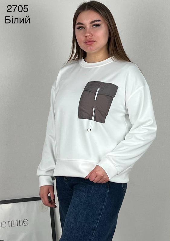 😍Комфортний та стильний светрик в найулюбленіших кольорах. Зручний у носінні. Вільна посадка не сковує рухів. Легко та стильно поєднується. Доповнений кишенькою. ✂️Матеріал: трикотаж ⭐️Гарної якості . 🏷 Розміри: універсальний(42-48). Параметри моделі : Зріст - 170 см ОГ - 95 см ОТ - 83 см ОБ - 103 см