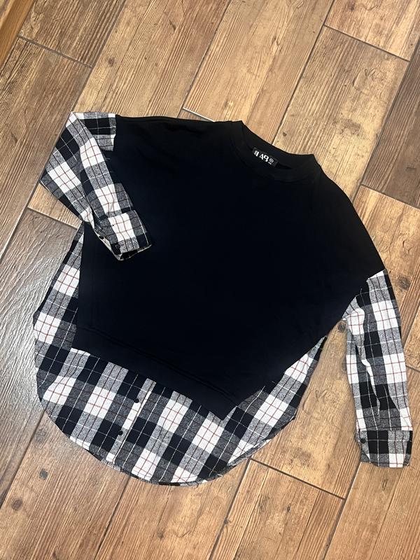 Чорний світшот з імітацією сорочки. Якісна цупка тканина. Оверсайз Довжина 75 Довжина по бокам де округлення 50 Ширина 56