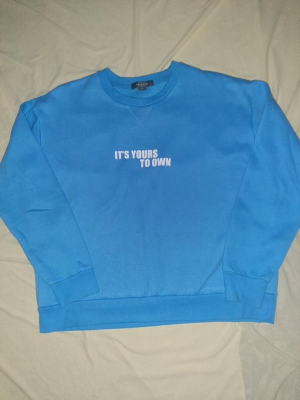 Світшот на флісі, гарного блакитного кольору, розмір указаний М: ПОГ - 64см, рукав від горловини - 75см, довжмна - 62см