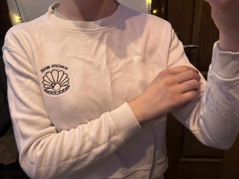 Біла кофта з манжетами та легким утепленням — м’яка, зручна й приємна до тіла. Добре тримає форму та підходить для прохолодної погоди. Базова річ, яка легко поєднується з будь-яким гардеробом.