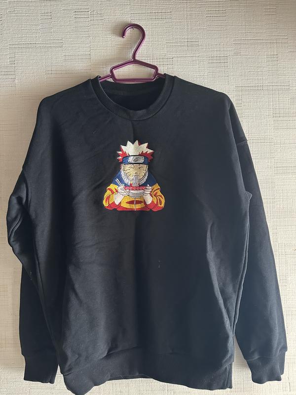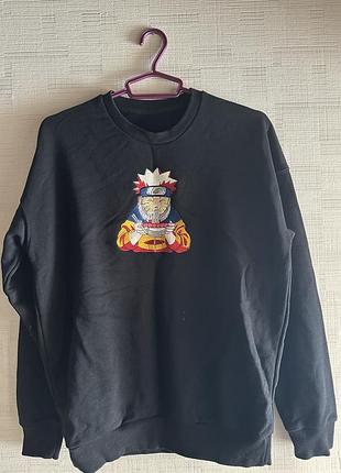 Світшот Наруто розмір С чорного кольору Ширина під руками 54 Довжина виробу 68 Рукав від плеча 53 плечі спущені Без флісу
