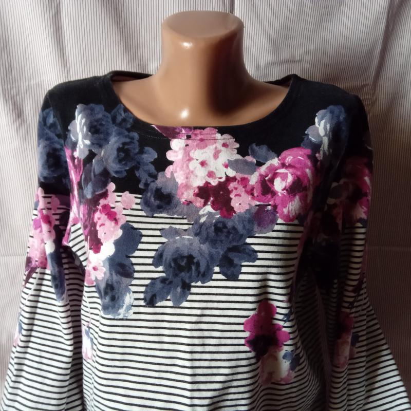 Натуральний,сучасний. Має гарний принт. ФОТО НА ТІЛІ НЕМАЄ. Довжина 63/66 Завширш(пахви) 55/58 Низ 58 Стан нової - СТОК
