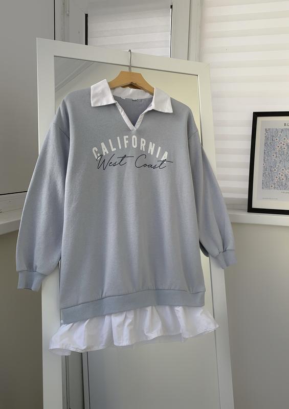 Світшот з елементами сорочки Розмір: бірка зрізана йде на S/M Півобхват грудей 55,5 см Рукав 48 см Довжина 80 см Рукав від горла 68,5 см На флісі Матеріал: 60% бавовна і 40% поліестер Стан: нової речі